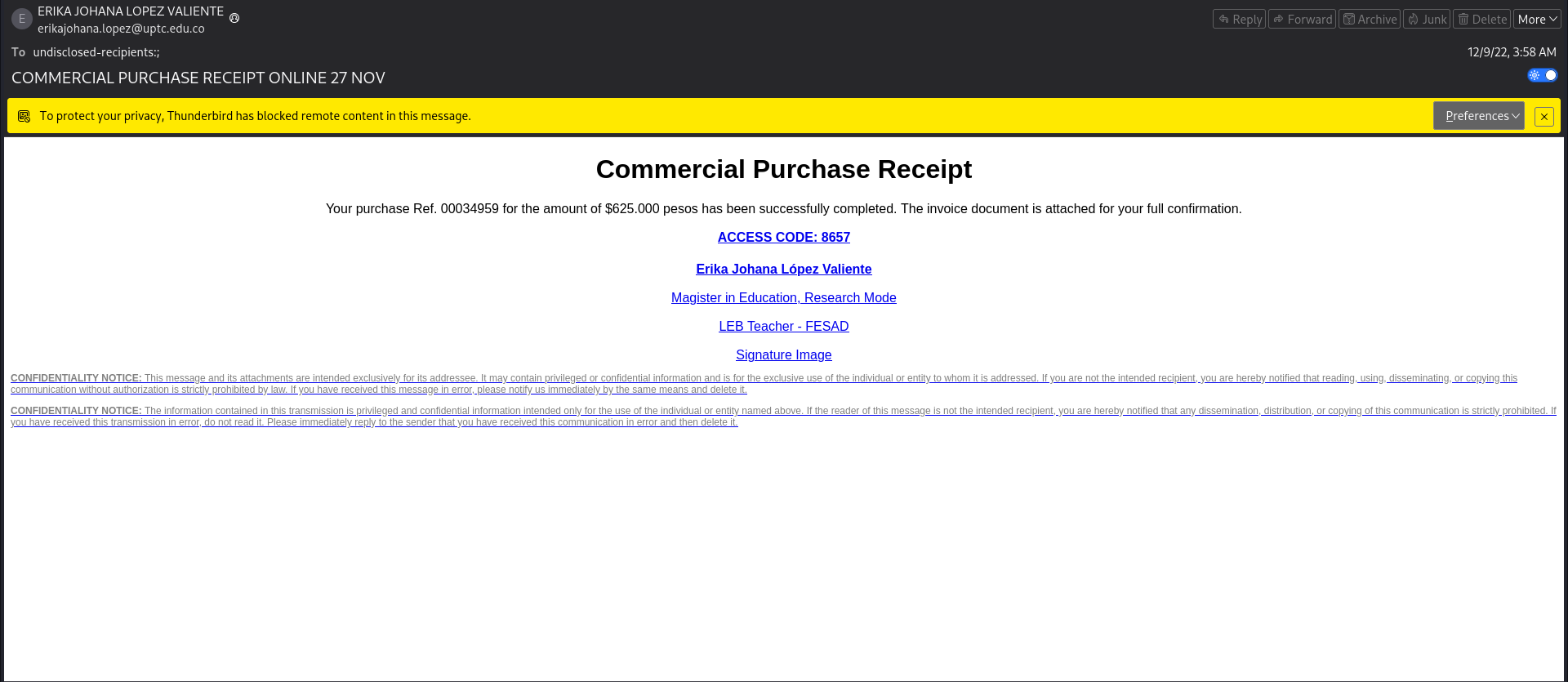 erikajohana.lopez@uptc.edu.co | Email Address | Spoofed sender / Return-Path |