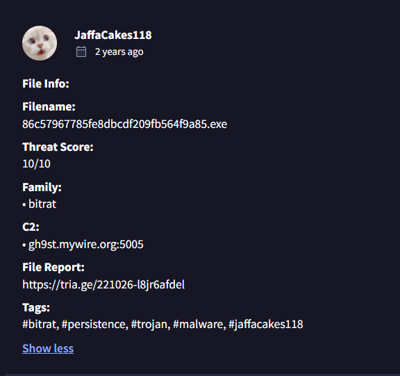 bf7628695c2df7a3020034a065397592a1f8850e59f9a448b555bc1c8c639539 | BitRAT |
